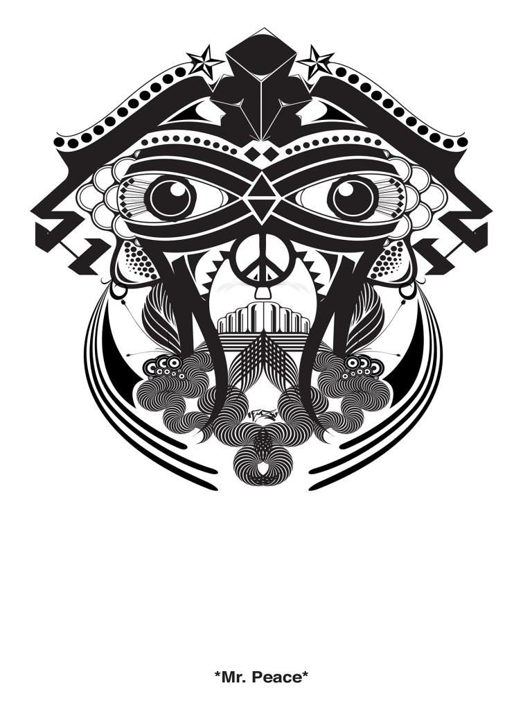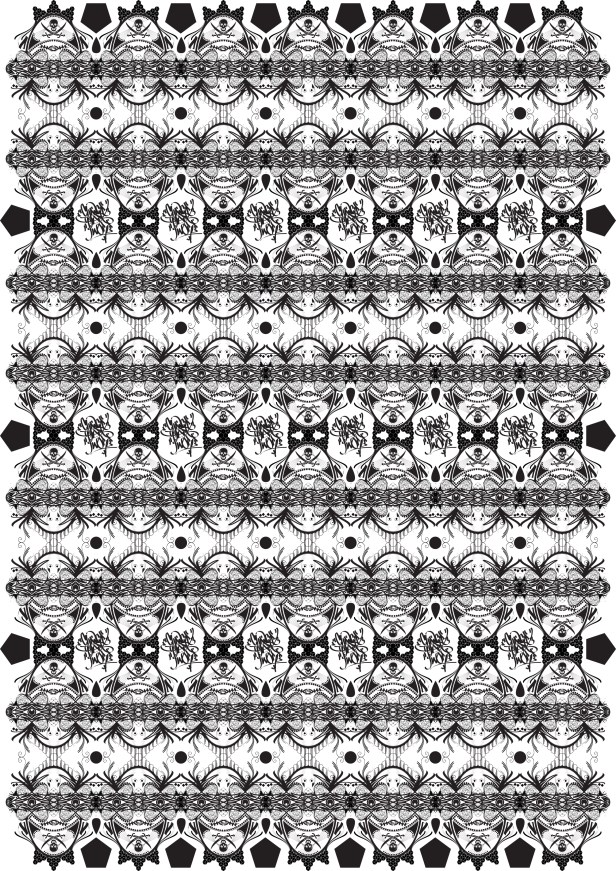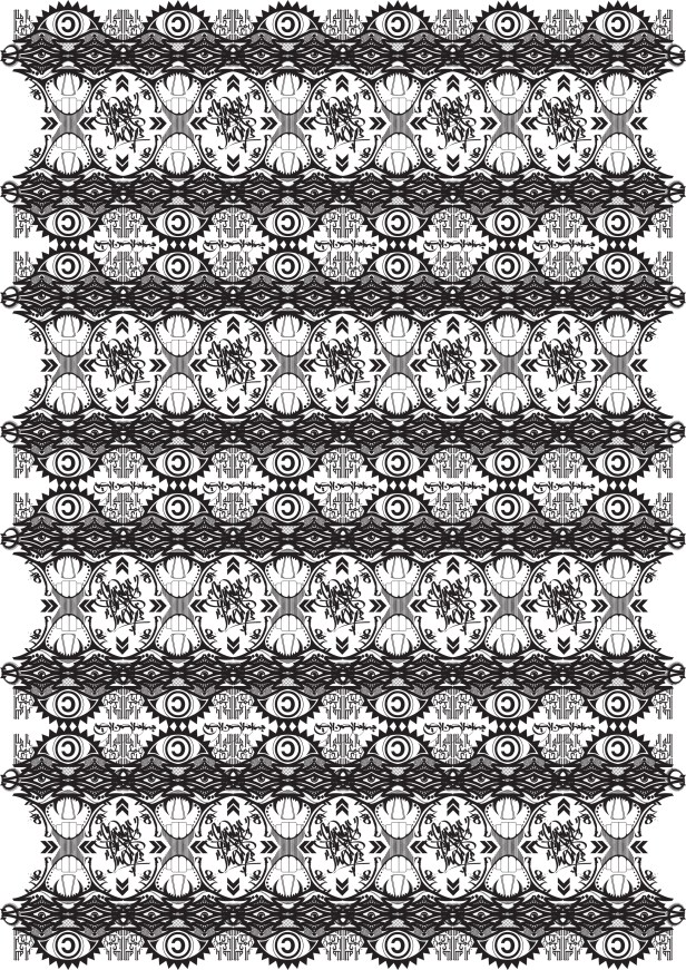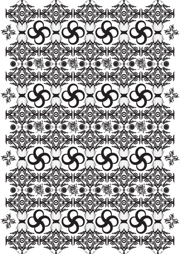 è una realizzazione dove si evidenzia i vari simboli censurati e non dal sistema. In più c’è la fusione con i volti vettoriale. Ogni simbolo viene arrichito da un volto semi-astratto, fatto con la linea… I Vari pattern danno vita a originali carte da parati, “cosa potrebbe accadere a livello percettivo, comunicativo e visivo ad un essere esposto a questi determinati simboli?” nel nostro attuale sistema occidentale si vede bene cosa accade ad un essere che viene esposto ai simboli da noi considerati ormai comuni.