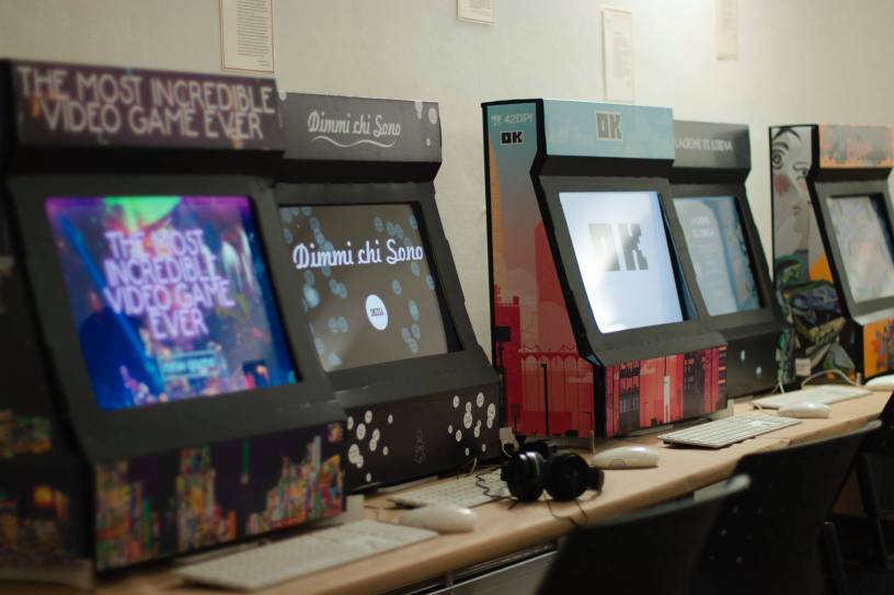 The installation project is the experimental result of the first Italian workshop on the design videogame co-organized by an Academy of Fine Arts. The project was wanted, shared and coordinated by Ivan Venturi, historical reference personality of the Italian videogaming and by Professor Danilo Danisi, teacher and coordinator of the Ababo Graphic Design course, with the collaboration of professor Mario Rivelli, lecturer and coordinator of the course on Comics and Illustration, all signed through a four-year convention between the two bodies.