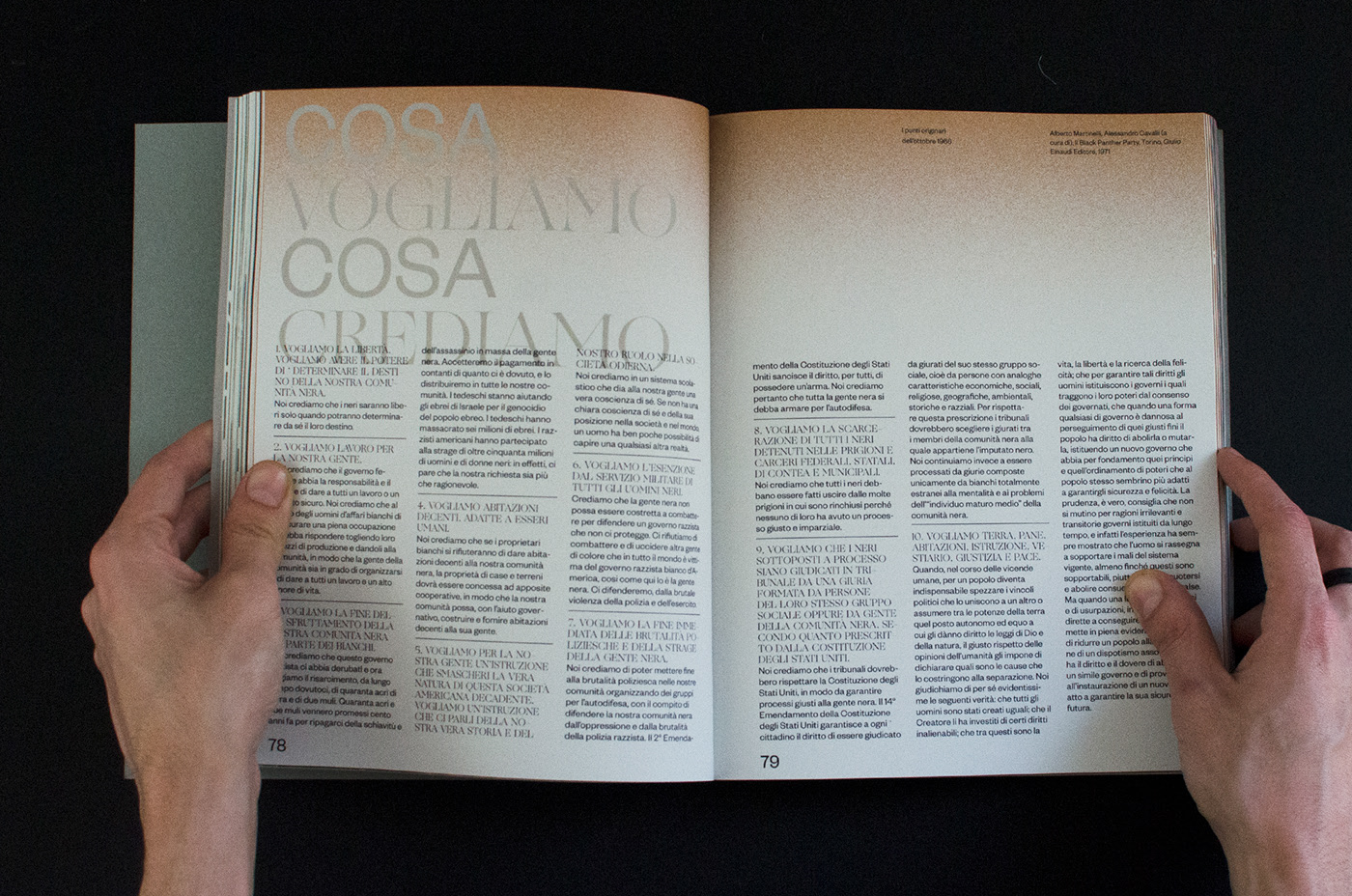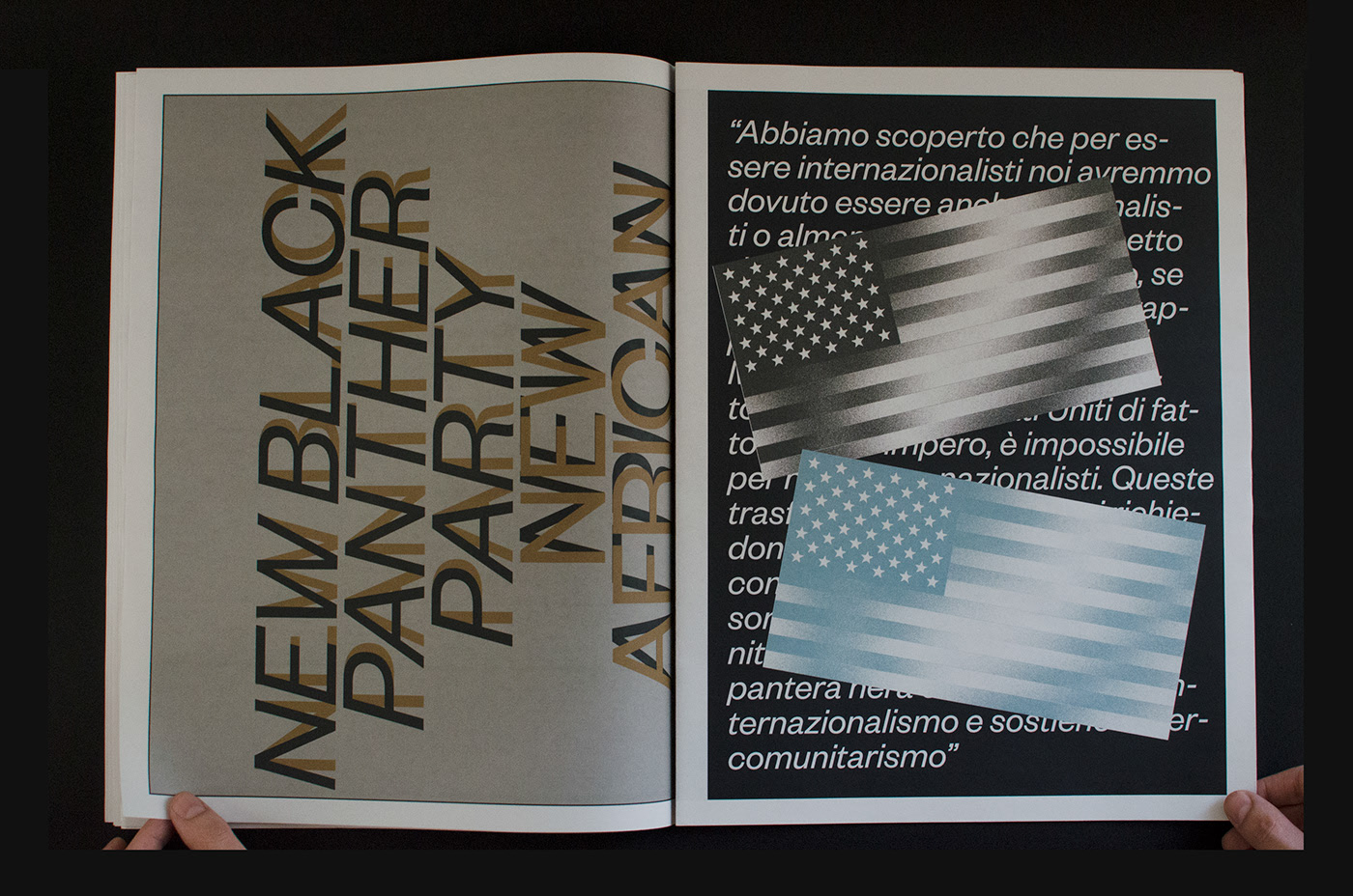 The project is well showed at the behance profile of Michelangelo Greco (aka Dude): https://www.behance.net/gallery/77825113/Editorial-LaGrafica-diProtesta-del-Black-Panther-Party