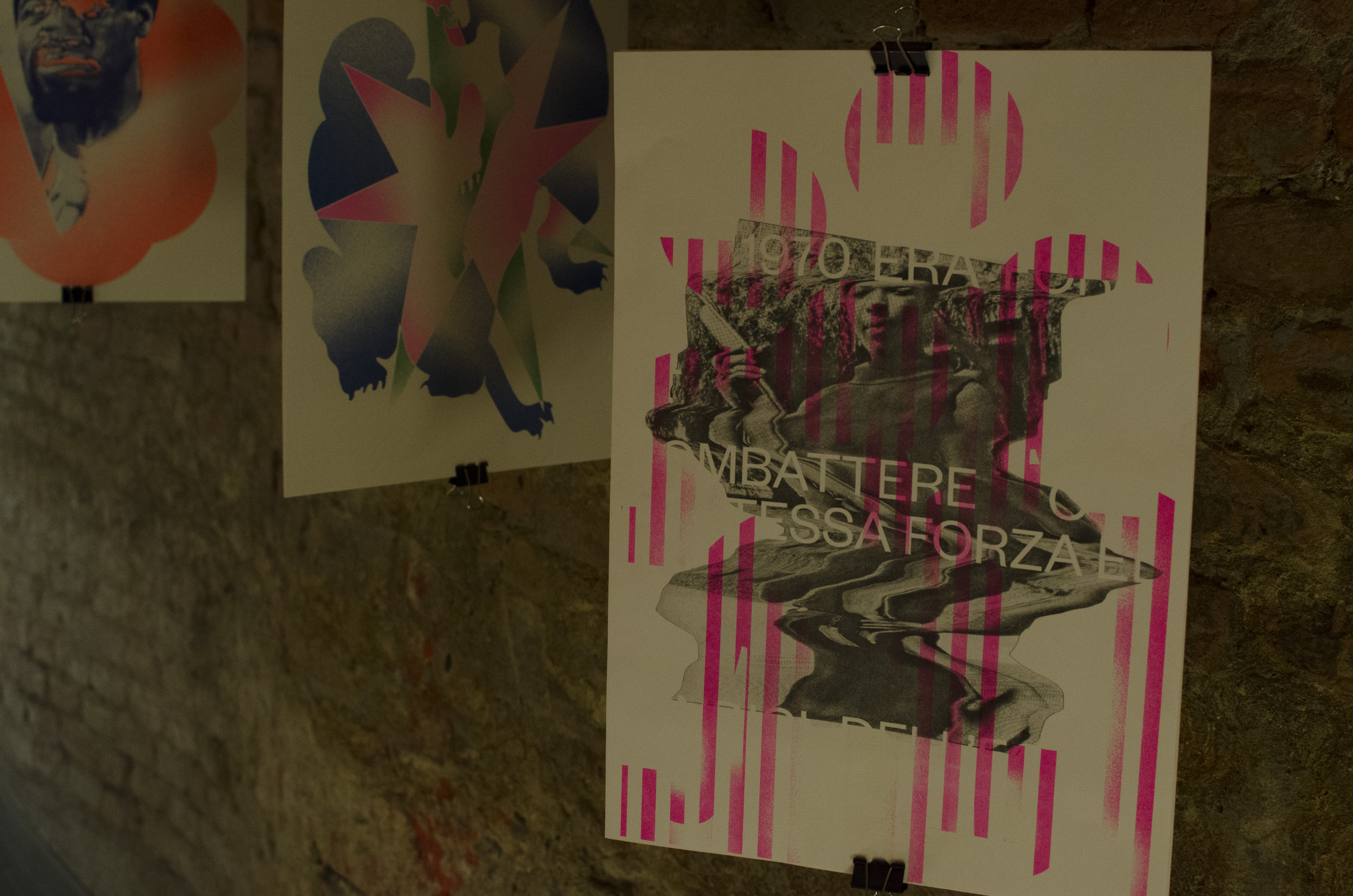 In addition to this wonderful book, Michelangelo presented some experimental and underground political posters, printed with creative fluorescent and metallic tones.