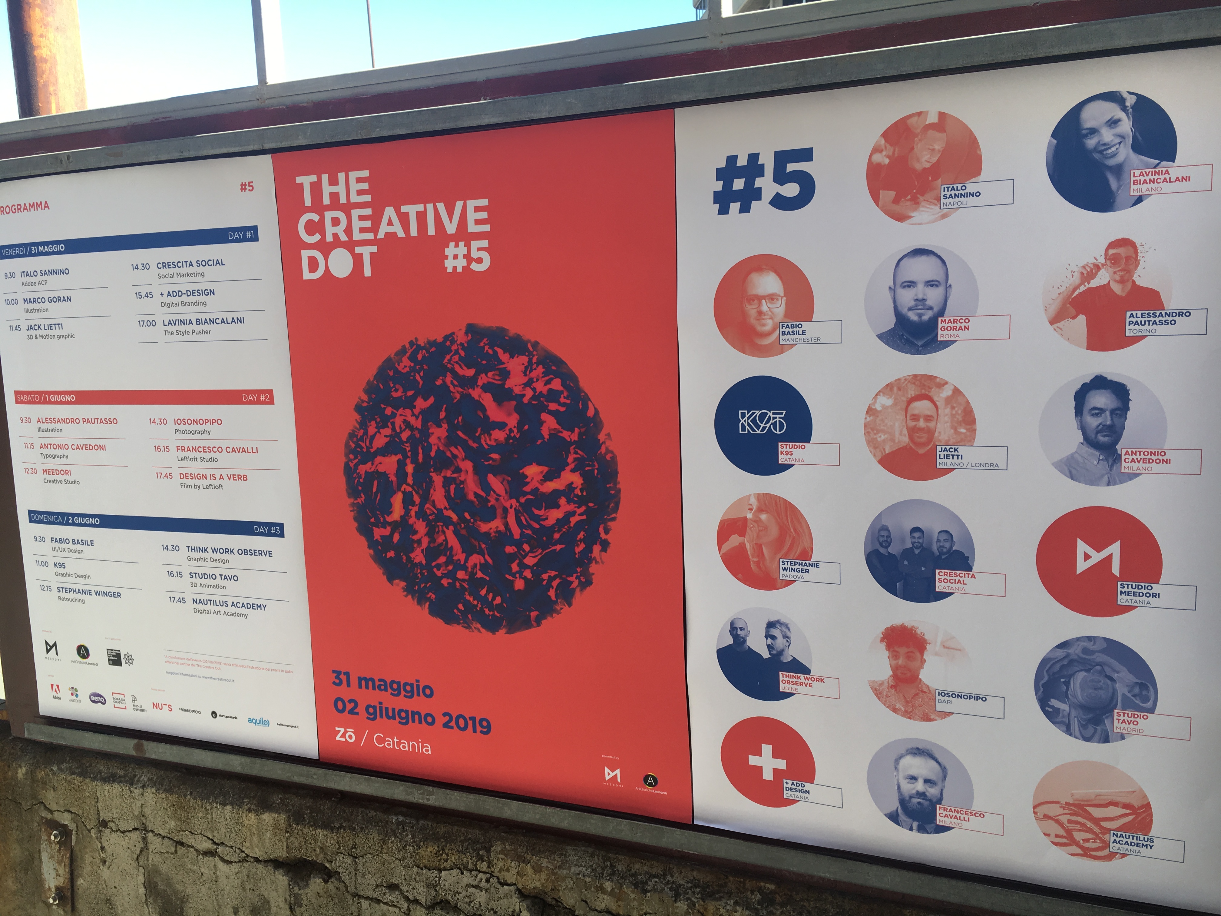 This is a personal -report- on Creative Dot #5 a very interesting graphic design 3 days event, from 31 May to 2 June 2019 in Catania, Italy – organized by ex-students and professors of ABA Catania.