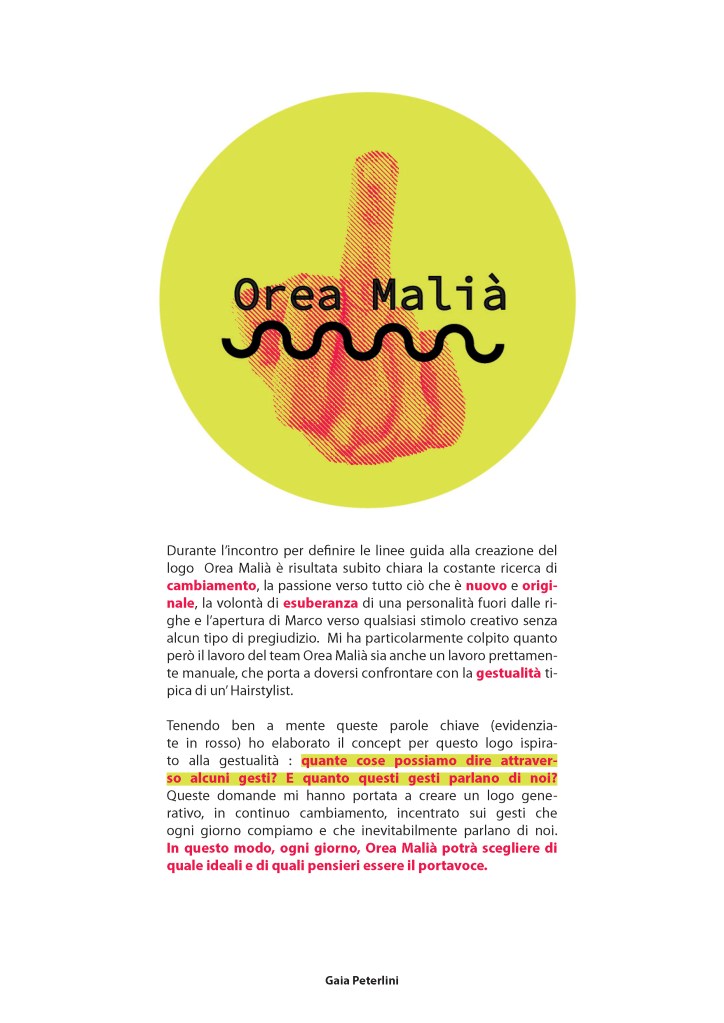The proposals presented to the logo contest were more than 23, at least 1 for each student of the first year graphic design class. Some of these proposals were really very innovative and the choice of the winner was not easy. By virtue of the “changing” history of the Orea Malià logo, the selected student was Silvia Minali. All students were rewarded with Malià brand merchandising items.