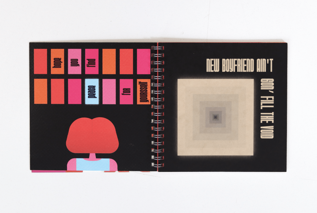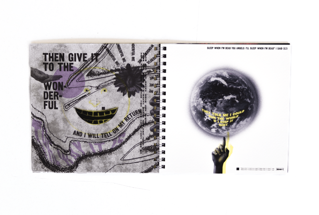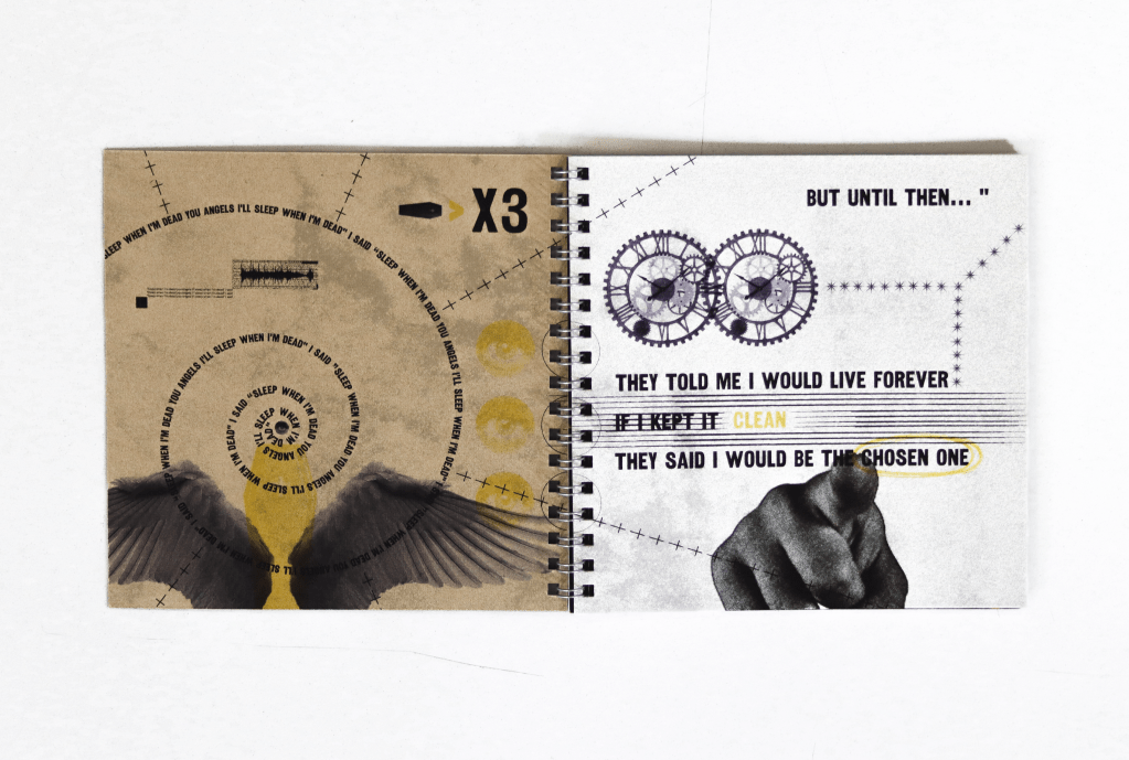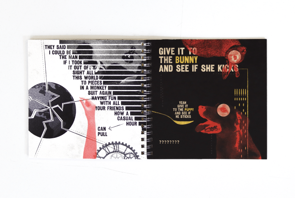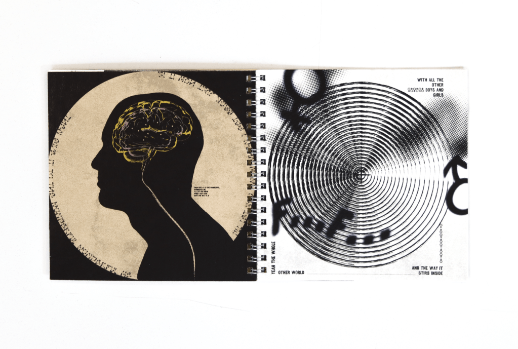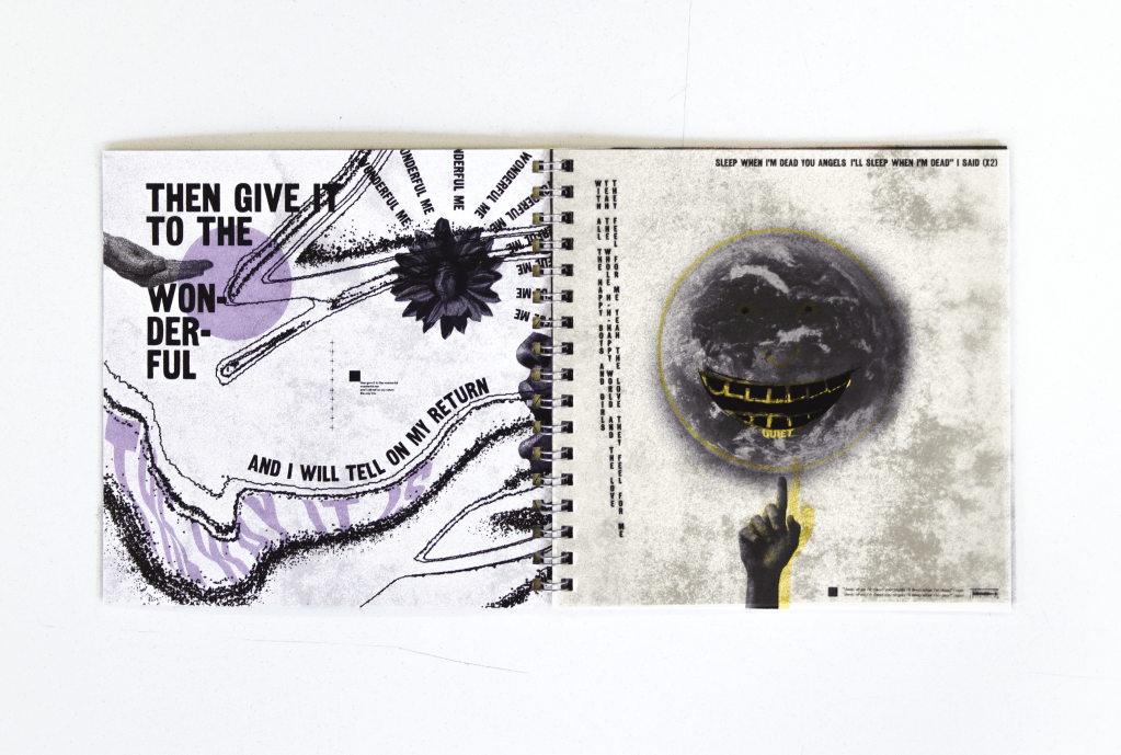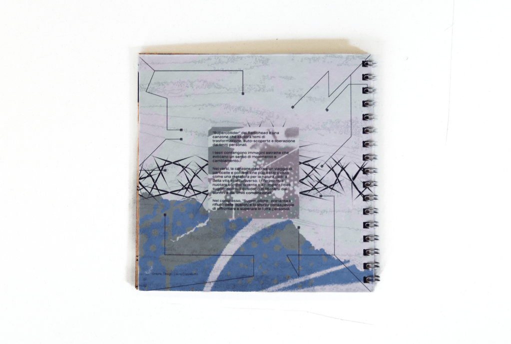 The images show the special and personal editorial project presented during the Graphic Design 1 exam. Three “songzines” based on three key soundtracks of the student’s life, printed with different techniques and interesting graphic ideas, in a very “underground and experimental mood”.